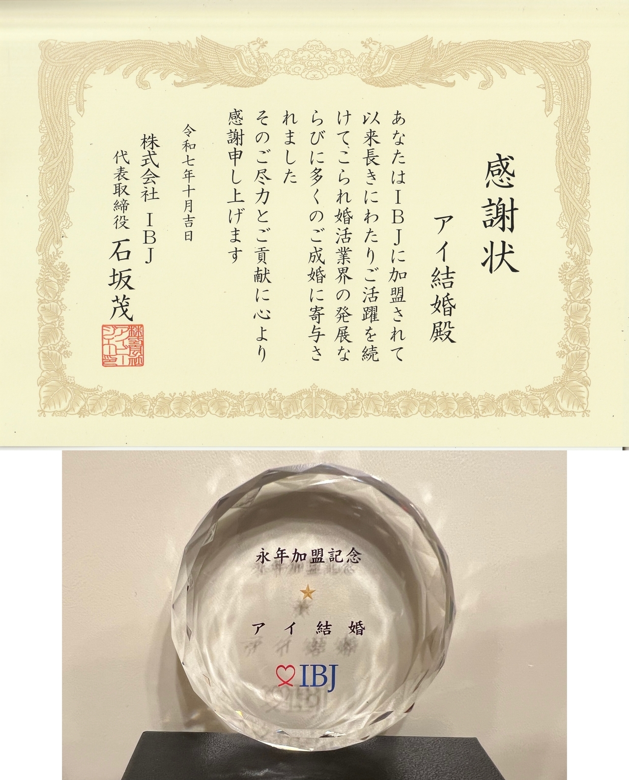 このたび、IBJ様より感謝状をいただきました♫